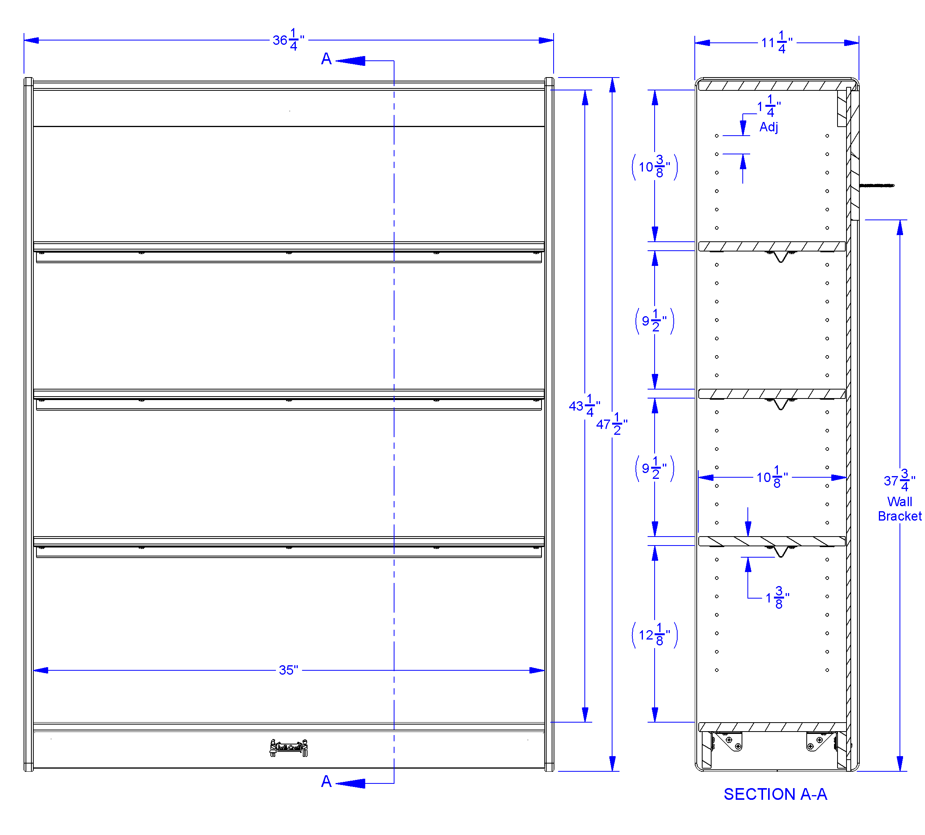 35.50" High x 36.50" Wide x 11.50" Deep
