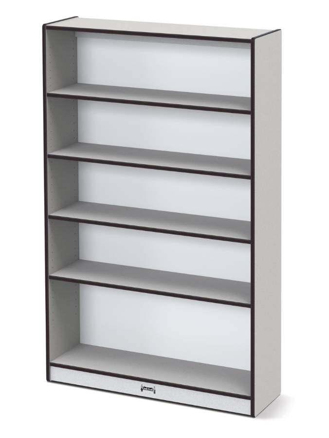 The ultimate in bookcase shelving! This fully assembled bookcase features four shelves that adjust in 1.25 inch increments to accommodate books of all sizes. Wall fastener included. Constructed of double-sided freckled gray laminate with black TRUEdge.