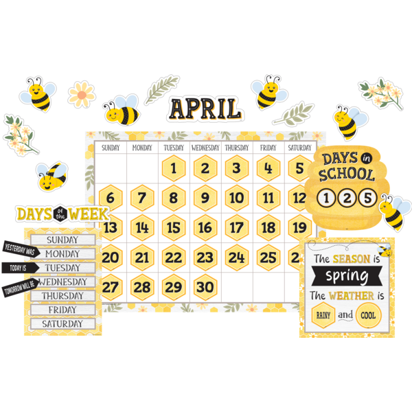 This vibrant and zippy calendar display comes with easy-to-read number pieces, colorful monthly headers, and additional pieces for holidays and special occasions. It also includes pieces for counting the days of the school year, as well as pieces for the weather, seasons, days of the week, yesterday, today, and tomorrow. Blank calendar measures 24" x 18". 131 total pieces.