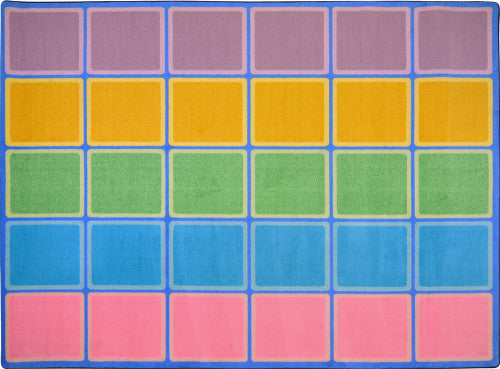 Don’t have a “mental block” getting “blocked out” of space because “blocks abound” on this vibrant classroom carpet. Rug has thirty spaces.