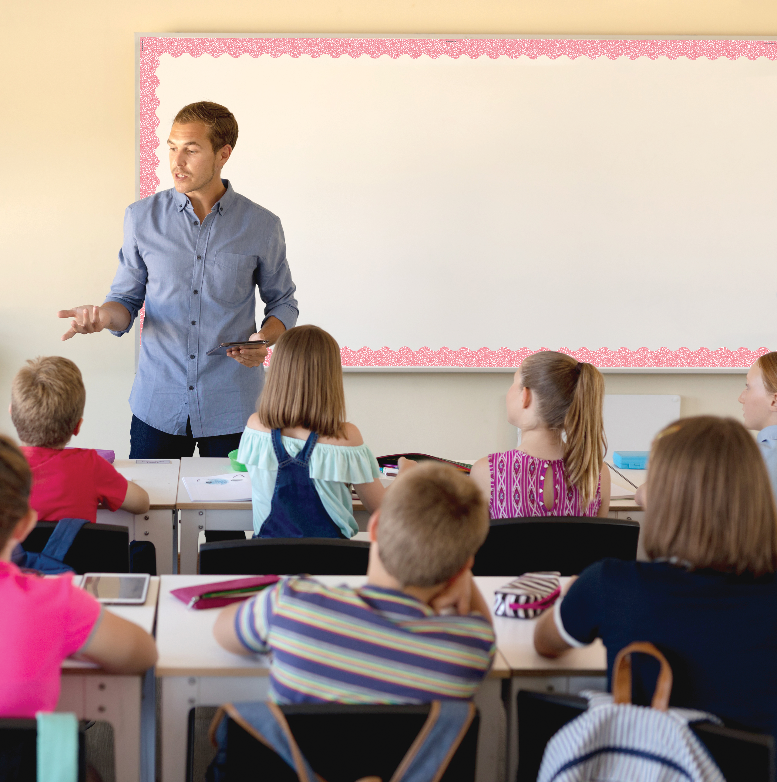 Use colorful border trim to liven up your classroom! Create fresh looks for bulletin boards, windows, walls, and class projects. Mix and match with coordinating products (stickers, notepads, awards, etc.) for a classroom theme. 35 feet of trim per pack.
