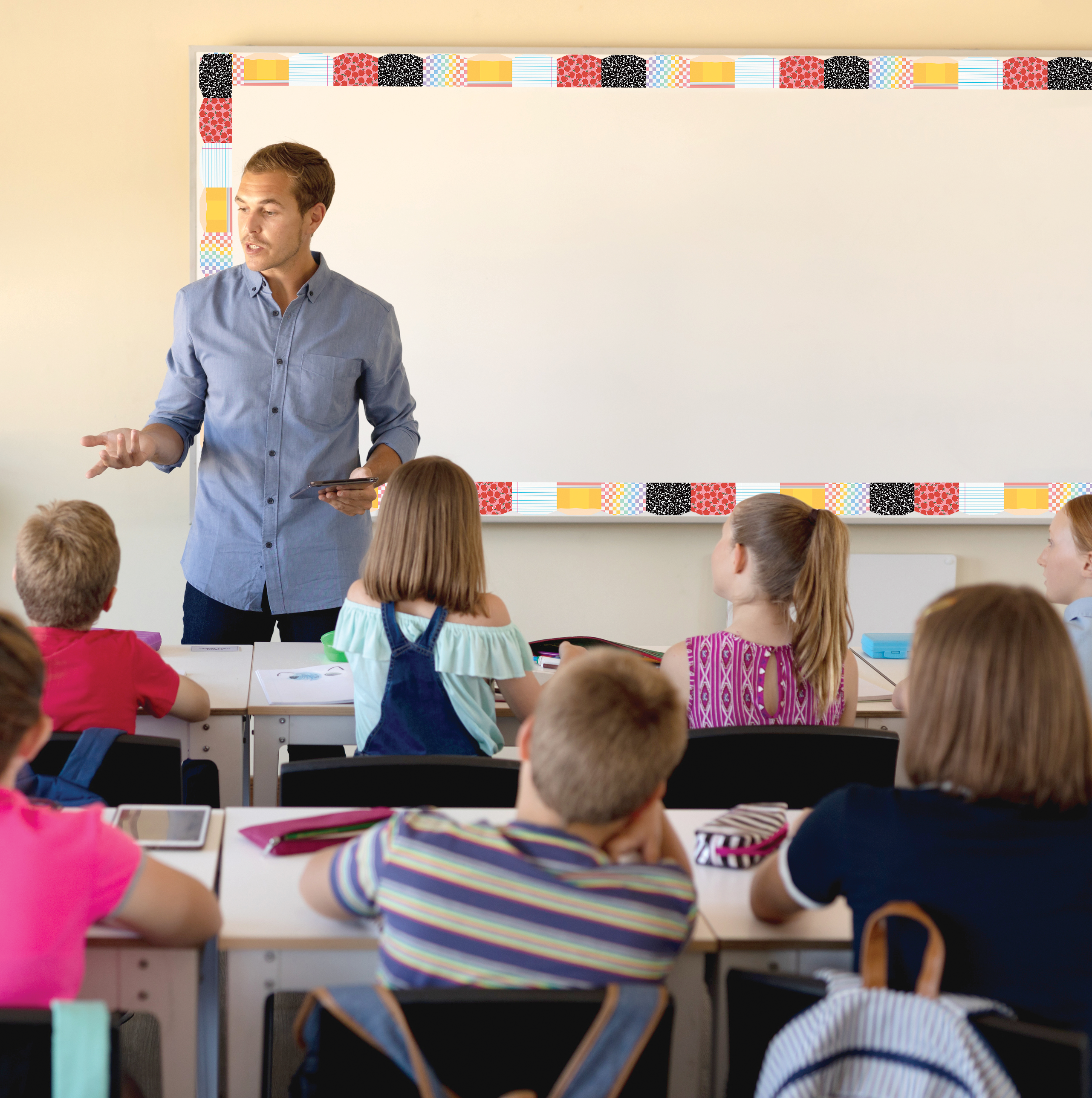 Use colorful border trim to liven up your classroom! Create fresh looks for bulletin boards, windows, walls, and class projects. Mix and match with coordinating products (stickers, notepads, awards, etc.) for a classroom theme. About 35 feet of trim per pack.
