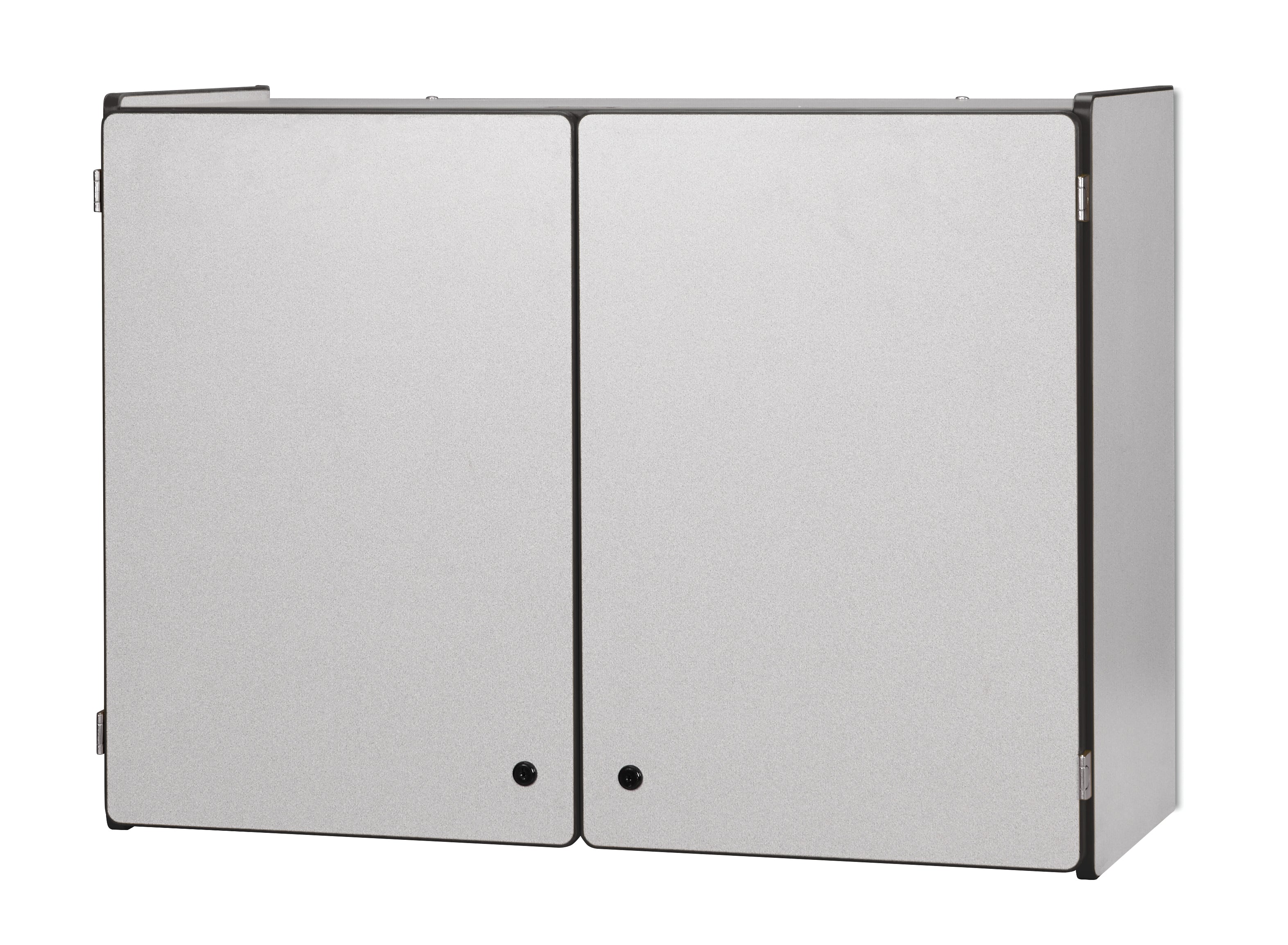 Safeguard supplies in this lockable wall cabinet. Perfect for storing above a Diaper Changer for additional storage. Features two adjustable shelves to allow for storing items of various sizes. Lock-n-key and easy to mount wall bracket included. Constructed of double-sided freckled gray laminate with black TRUEdge.KYDZSafe edges. KYDZStrong construction. TRUEdge. Constructed of 5/8Ó thick freckled-gray Thermally Fused Laminate (TFL). See cleaning recommendations at www.jonti-craft.com/cleaning.
