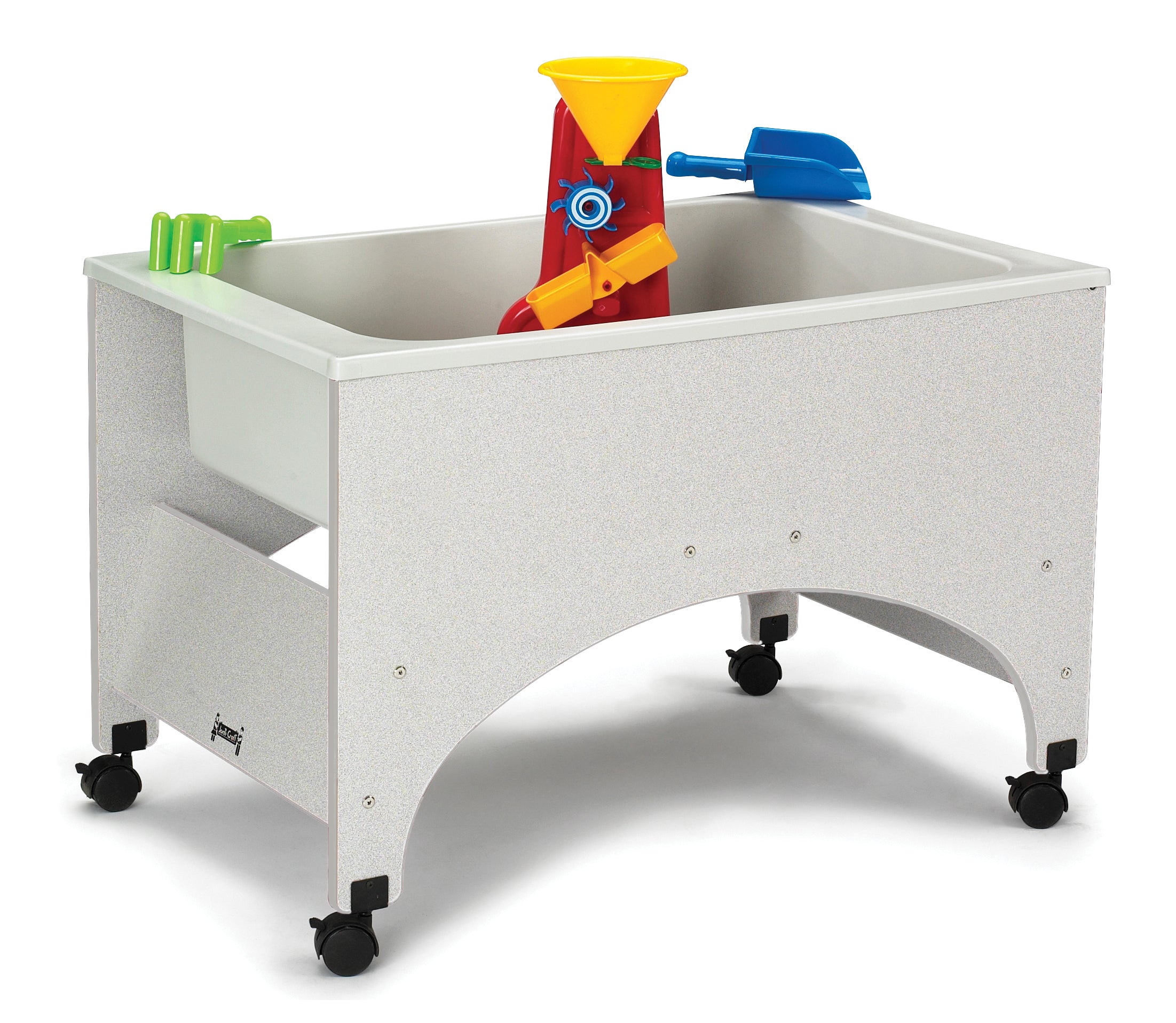 A sensory made for the small spaces! Extra deep 9" tub provides maximum splash containment, and the drain with valve provides easy cleanup. Unlock the casters and wheel from room to room. Activity cover included. Constructed of double-sided freckled gray laminate with gray TRUEdge.KYDZSafe edges. KYDZStrong construction. TRUEdge. Constructed of 5/8â thick freckled-gray Thermally Fused Laminate (TFL). Fits easily through doors. Drain with valve included. Activity cover included. Heavy-duty, locking casters for mobility. See cleaning recommendations at www.jonti-craft.com/cleaning. Ready-to-Assemble.Product Height (inches):24.5Product Width (inches):36.5Product Depth (inches: 23