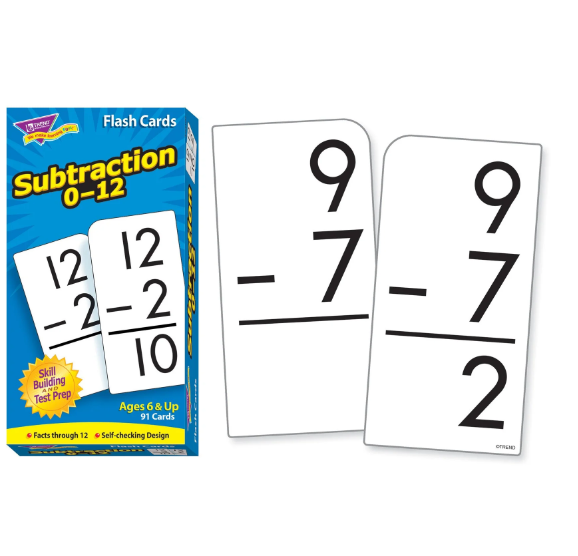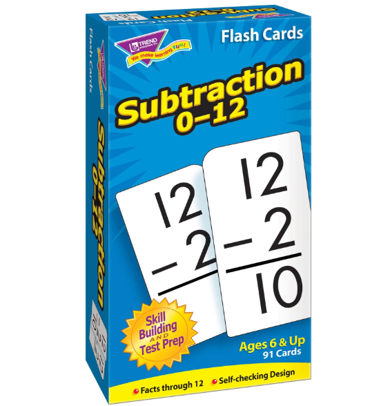 Content-rich math cards do their job, teaching students new skills in a fun way. This educational aid develops basic subtraction skills 0-12. Self-checking, answers on card backs. Sturdy cards and storage box. Students will delight in mastering new skills. No-see-through cards with quick-sorting, rounded corners. 91 cards, 3" x 6".