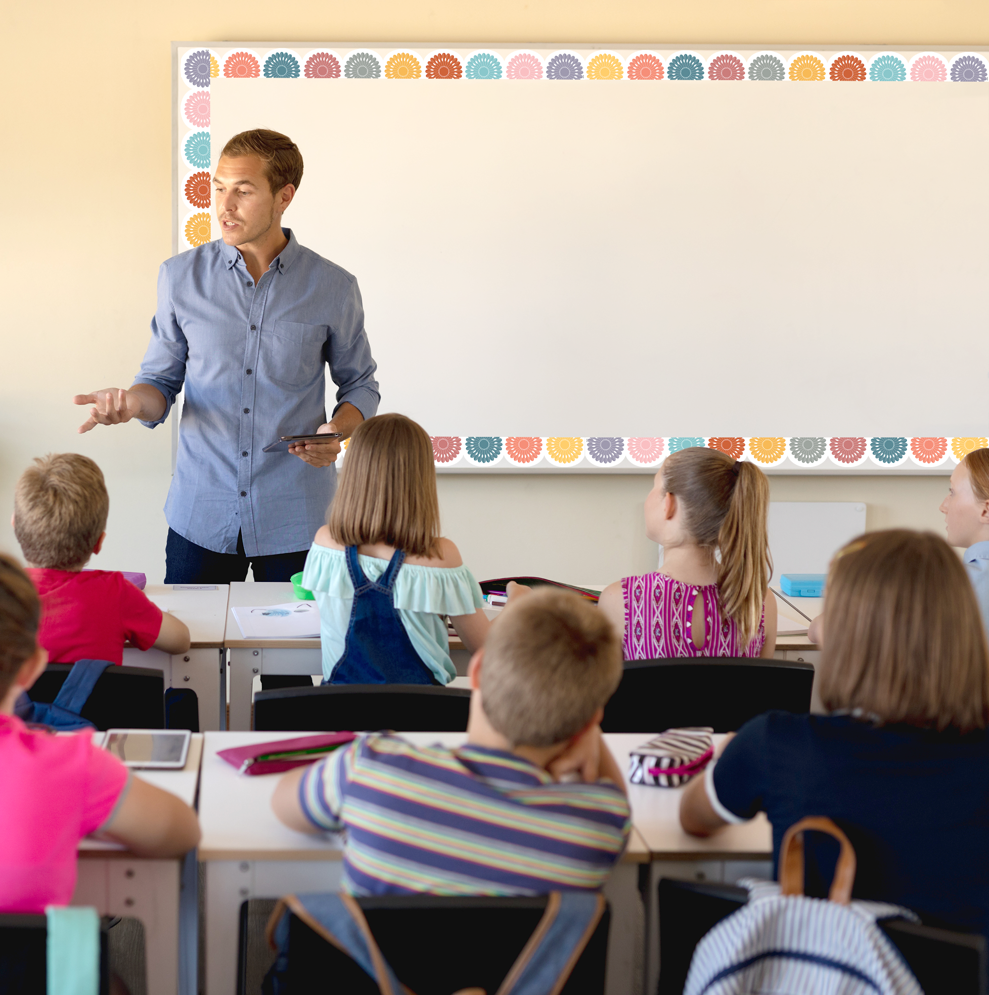 Use colorful border trim to liven up your classroom! Create fresh looks for bulletin boards, windows, walls, and class projects. Mix and match with coordinating products (stickers, notepads, awards, etc.) for a classroom theme. About 35 feet of trim per pack.