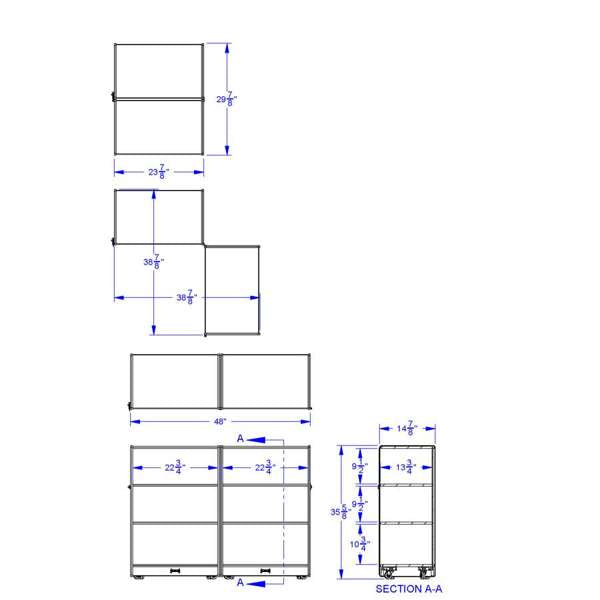 Extra storage in a small footprint. Opens to four feet. Each wing is 24" wide x 15" deep x 35.5" high.KYDZSafe edges.