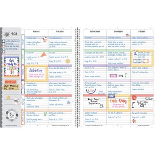 Lesson planners and teacher record books organize substitute teacher information, student roster sheets, and memorable quotations to use and discuss throughout the year. Twelve monthly calendar spreads are also included with year-long lesson planning, appointment scheduling, conference ideas, and events!