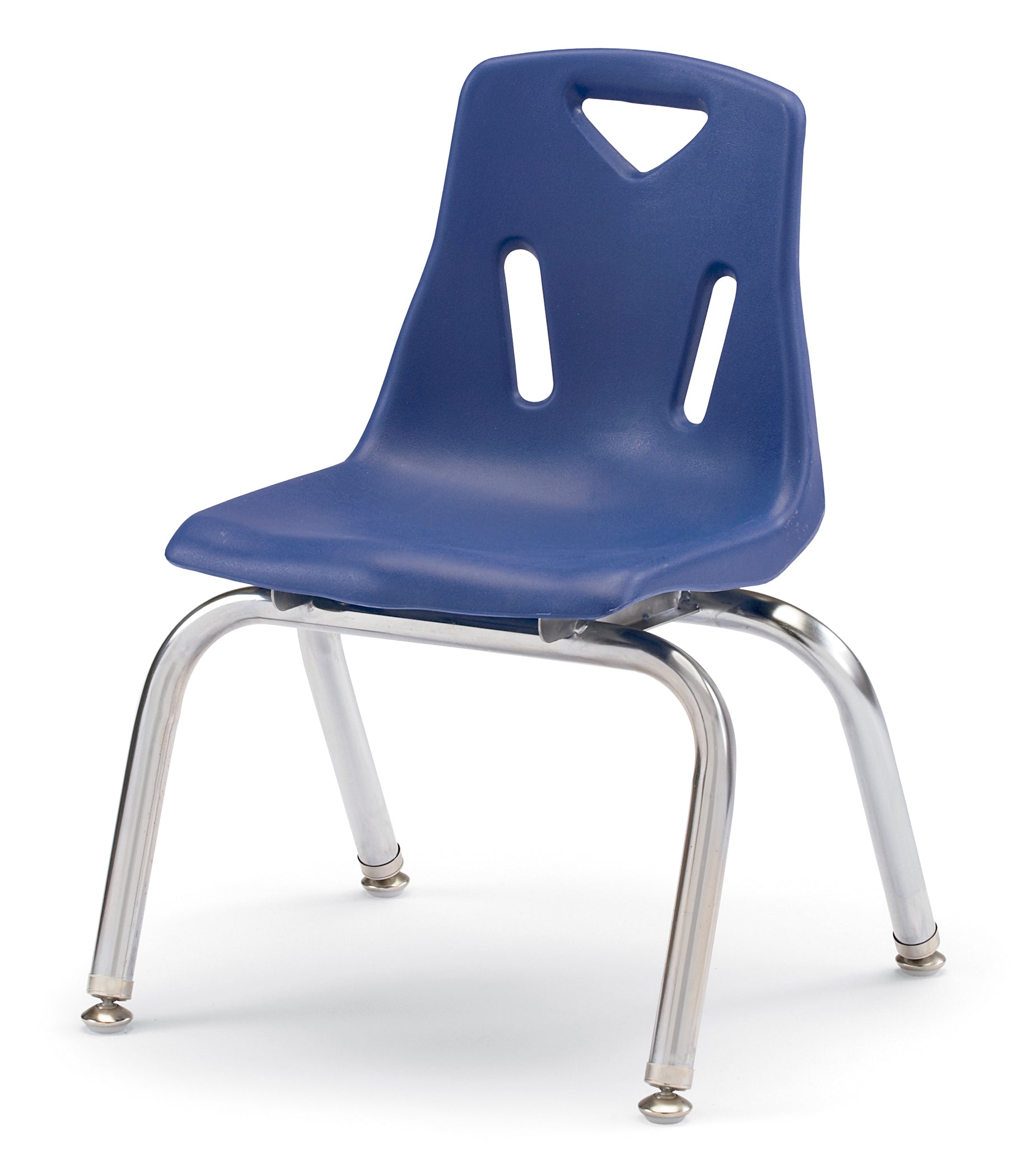 The child-friendly design of this blue Berries Chairs promotes seating comfort, durability, and attractive styling. It has a 12” seat height and can easily be stacked. Chrome-Plated legs provide an upscale look and complement Berries Tables perfectly. The colorful polypropylene shell is easy to clean, prevents blushing, and even eliminates annoying static electricity. Non-exposed rivets on the heavy-gauge steal frame prevent snags and glides reduce noise, prevent scratching, and resist rust.