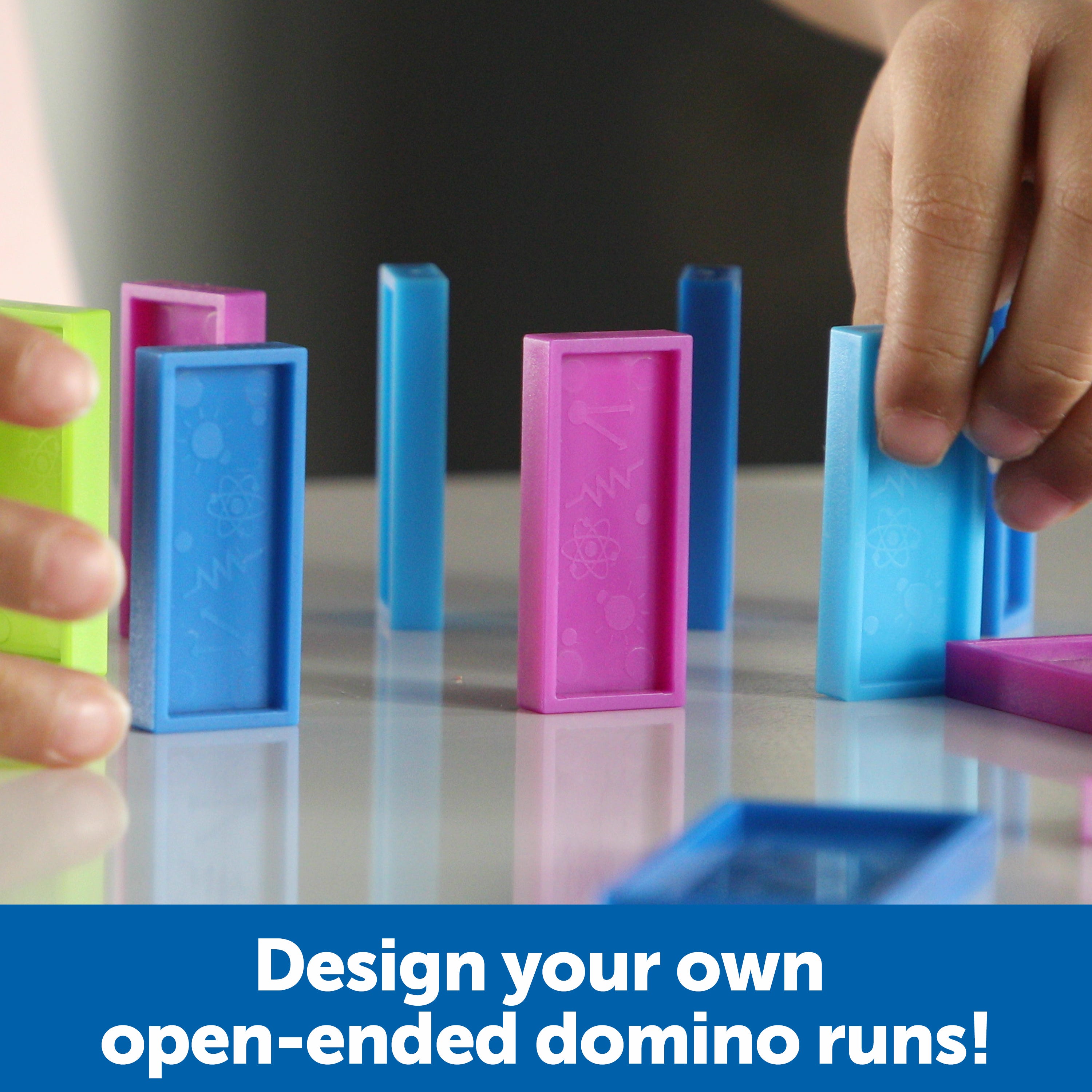 • Tumbling, Toppling Action: As kids use their dominos to send balls sliding down the slide or spinning through the gate, they’ll observe kinetic forces, cause-and-effect, and more!