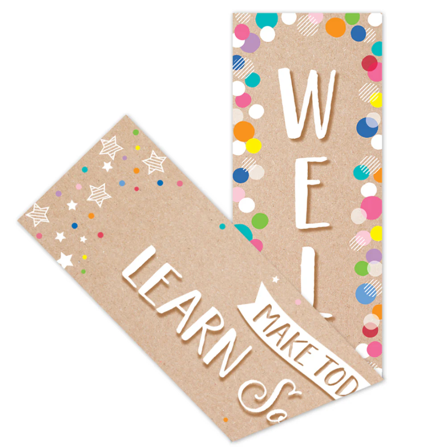 This festive and versatile 2-sided banner features a different message on each side—Side 1: “Welcome” and Side 2: “Make today the day to learn something new.” It can be used during back-to-school to welcome students and parents then flipped over for a motivational message the rest of the school year.