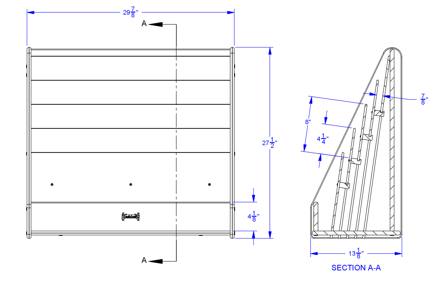 This flushback book stand is perfect for placing against a wall or using the write-n-wipe back for multipurpose use. Features five display shelves with approximately 1" shelf depth. The bookstand stores flush against walls and the top is fully rounded. Constructed of double-sided freckled gray laminate with teal TRUEdge.