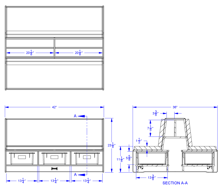 Young readers can nestle with their favorite stories on this two-sided couch. Seat is 11" high. Center partitions keep books close at hand to encourage reading. Six clear Tubs included for storing additional literacy items. Comfortable wheat-colored cushions provide a natural look and are great for Montessori spaces.