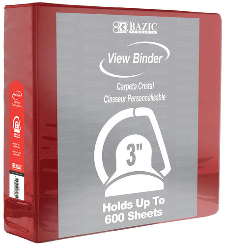 BAZIC Slant D Ring View Binder with 2 Pockets, 3", Burgundy