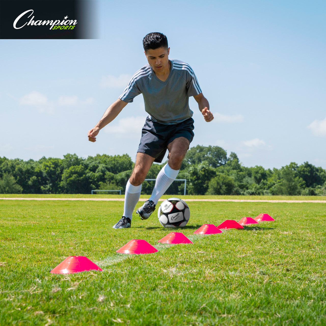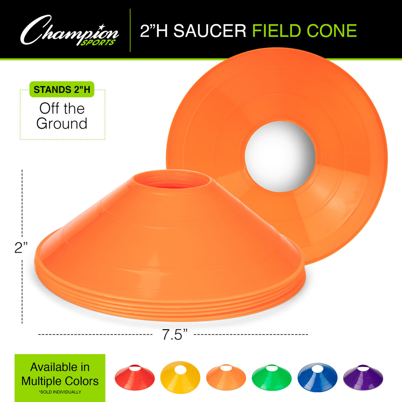 The Champion Saucer Field Cones are a versatile tool for just about every sport. Use these 7.5” low profile cones to set up an obstacle or agility course, or to mark boundaries on a field. The possibilities are endless.
