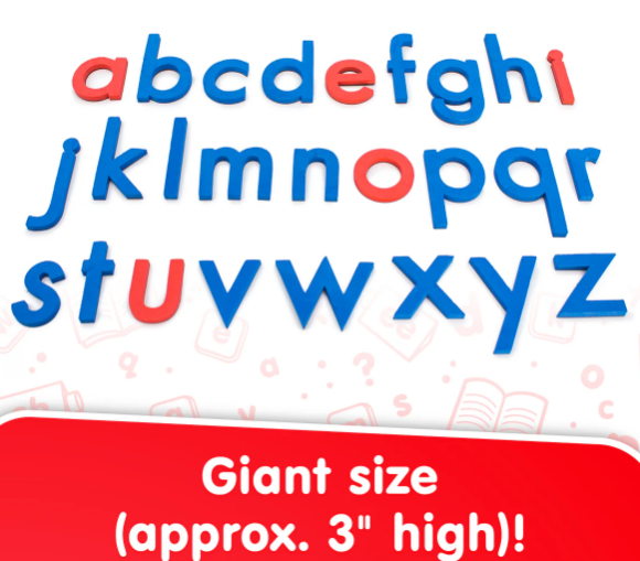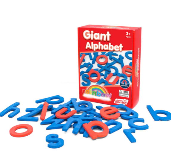 Rainbow Giant Alphabet is an engaging and creative magnetic resource that is perfect for teaching children letter recognition, alphabet sequencing and building basic CVC words. Giant Alphabet is a perfect introductory resource for toddlers learning the alphabet as the large-sized letters can easily be handled by small fingers and can help develop motor skills. Giant Alphabet can also be used as a fantastic classroom aid. The large-sized letters are ideal for placing on teacher’s whiteboards for whole classes to look, learn and complete activities together.