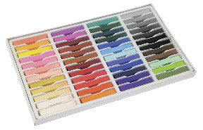 Richer in pigment and smoother in texture, these pastels will delight the aspiring artist with their soft, smooth velvet effect. Non-toxic. Sticks are 2-1‚ÅÑ2" x 3‚ÅÑ8". Each box contains a plastic holding tray to separate each pastel. Conforms to ASTM D-4236. Colors include: White, Lemon Yellow, Peach, Dark Orange, Red, Dark Green, Yellow Green, Turquoise, Blue, Violet, Burnt Umber, Black, Gold Ochre, Yellow Orange, Red Orange, Terra Cotta, Earth, Blue Green, Red Violet, Magenta, Light Blue, Dark, Blue, Navy, Gray, plus 24 additional shades.