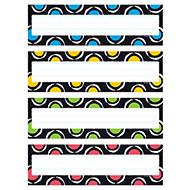 Perfect for showcasing names, fun messages, announcements, plus labeling lockers, desks, and centers. Four designs per pack make it easy to group students. So many uses! Guidelines on name plates for printing and writing practice. 4 designs, 32 per pack. 2⅞" x 9½". Coordinates with Bold Strokes Collection.