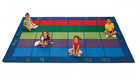 This simple, colorful rug is great for classroom organization. Each colored space makes a perfect place for children to sit on and have plenty of wiggle room, all while being surrounded by a literacy border. Seat size: 15" x 23", Seats 30.