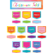 Add a colorful touch to your classroom with this bright classroom jobs mini bulletin board. The set includes titles for Lights, Clean-Up Crew, Calendar, Line Leader, Messenger, Papers, Pencils, Teacher's Helper, and Supplies, plus blank pieces that you can customize. Header piece measures 21" x 6". 45 total pieces.