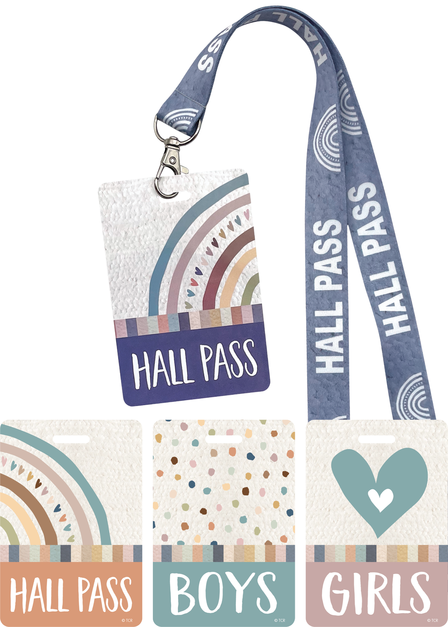 These hall passes are the perfect blend of functionality, convenience, and style for your classroom. Each durable hall pass is double-sided with a sturdy swiveling metal clasp and safety breakaway clip. Included are 2 ÒHALL PASSÓ passes, 1 ÒGIRLSÓ pass, and 1 ÒBOYSÓ pass, each with a matching fabric lanyard.4 durable, double-sided passes (2 hall passes, 1 boys pass, and 1 girls pass) ¥ Matching fabric lanyards with safety breakaway clips ¥ Sturdy, swiveling metal clasp ¥ Easy to clean and sanitize
