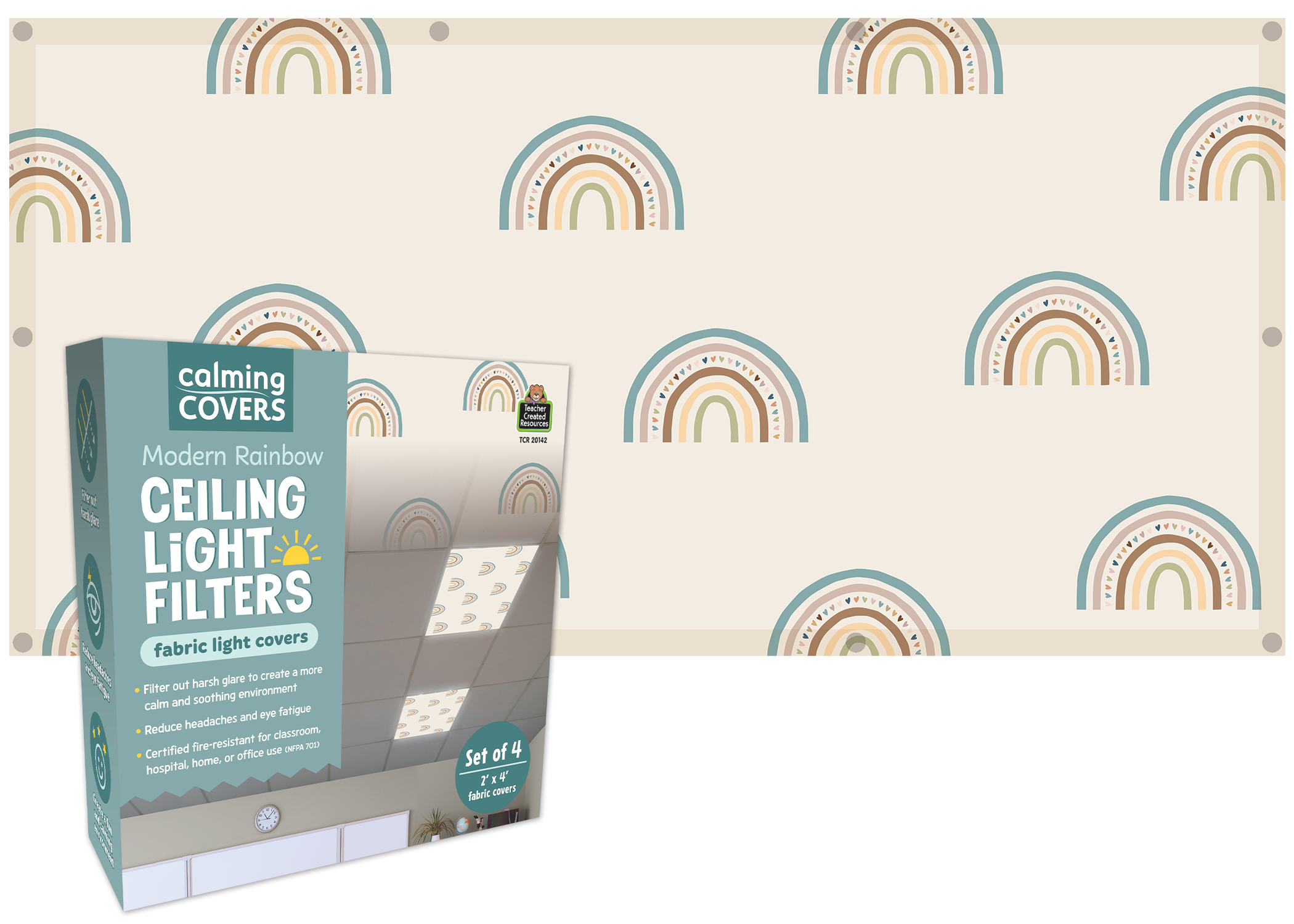 These visually appealing fabric light covers filter out harsh glare to create a more calm and soothing environment. They can also reduce headaches and eye fatigue. Fits most 2' x 4' ceiling light fixtures. The fire-resistant fabric conforms to fire safety standards.¥ Full coverage with no gaps