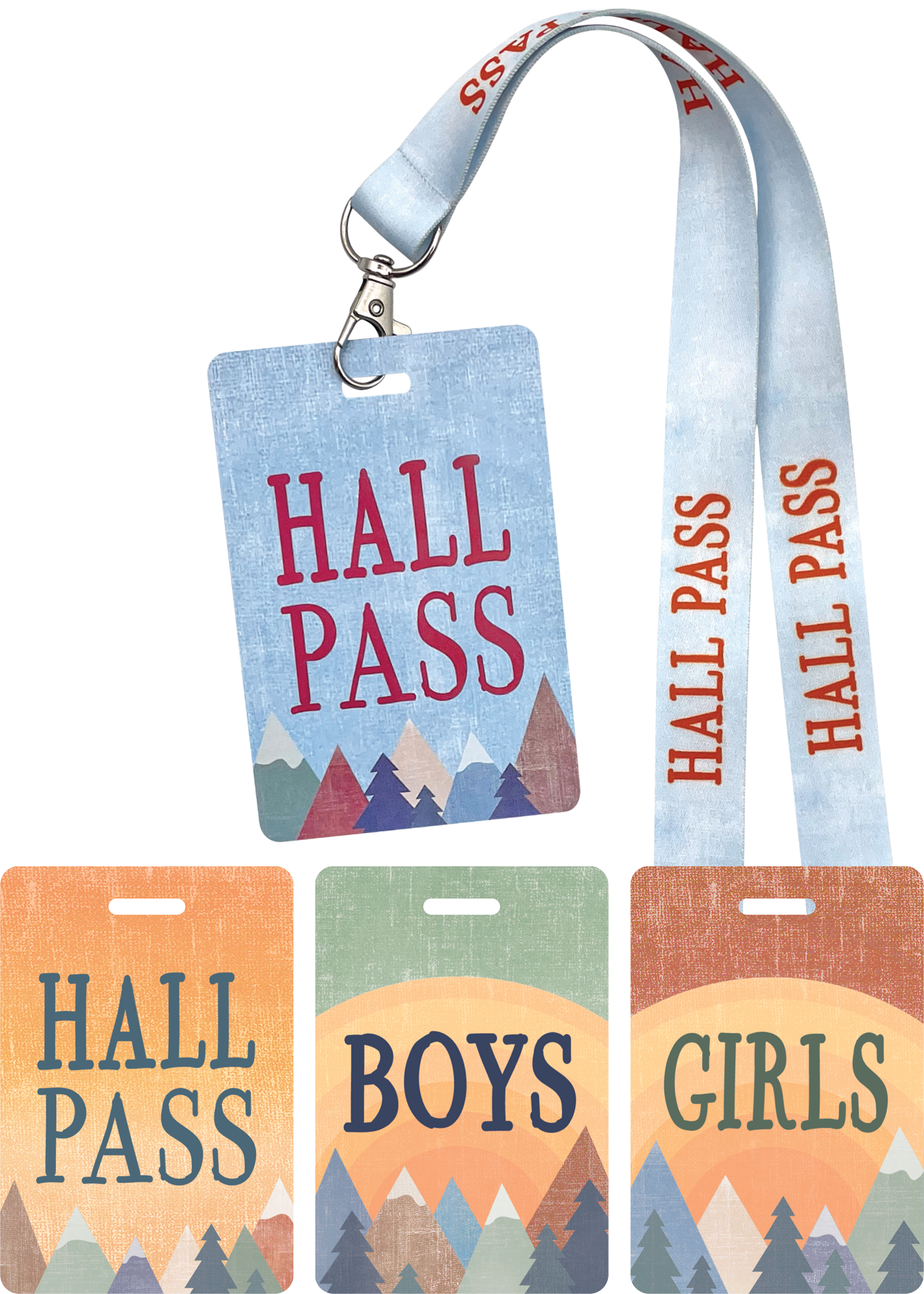 These hall passes are the perfect blend of functionality, convenience, and style for your classroom. Each durable hall pass is double-sided with a sturdy swiveling metal clasp and safety breakaway clip. Included are 2 ÒHALL PASSÓ passes, 1 ÒGIRLSÓ pass, and 1 ÒBOYSÓ pass, each with a matching fabric lanyard.4 durable, double-sided passes (2 hall passes, 1 boys pass, and 1 girls pass) ¥ Matching fabric lanyards with safety breakaway clips ¥ Sturdy, swiveling metal clasp ¥ Easy to clean and sanitize