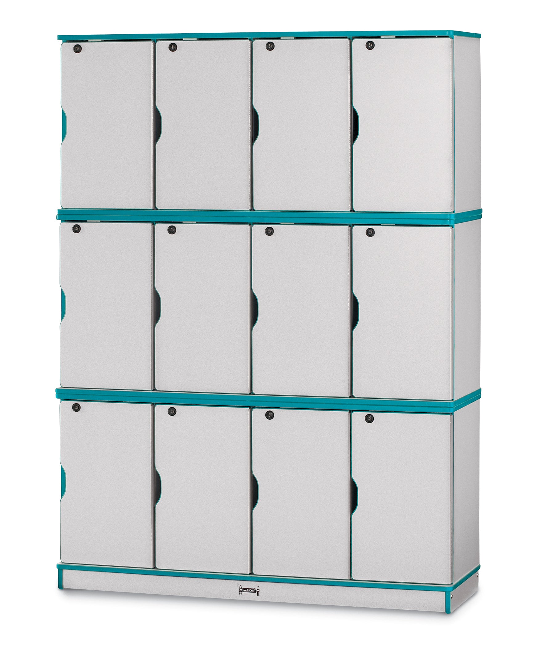 Rainbow Accents Stacking Lockable Lockers - Triple Stack - Teal