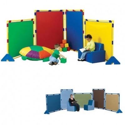 Use these easily portable big panels (4'x5' each) either vertically or horizontally to screen off separate areas. Hygienic cleanable vinyl covered nylon surfaces stretched upon polystyrene durable fittings. Flexible hinges link together and encourage foldable storage. Molded, weighted plastic feet insure stability.