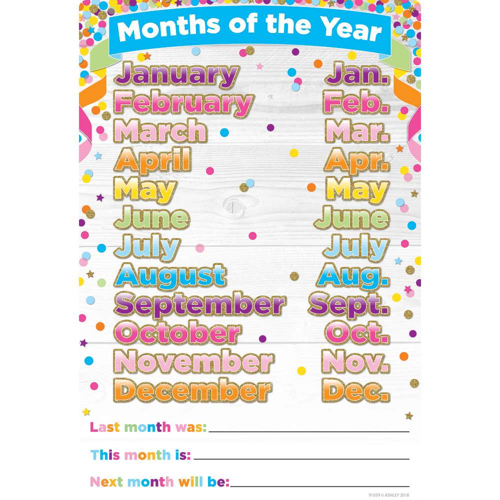 Confetti Months of the Year Smart Poly® Chart 13" x 19"