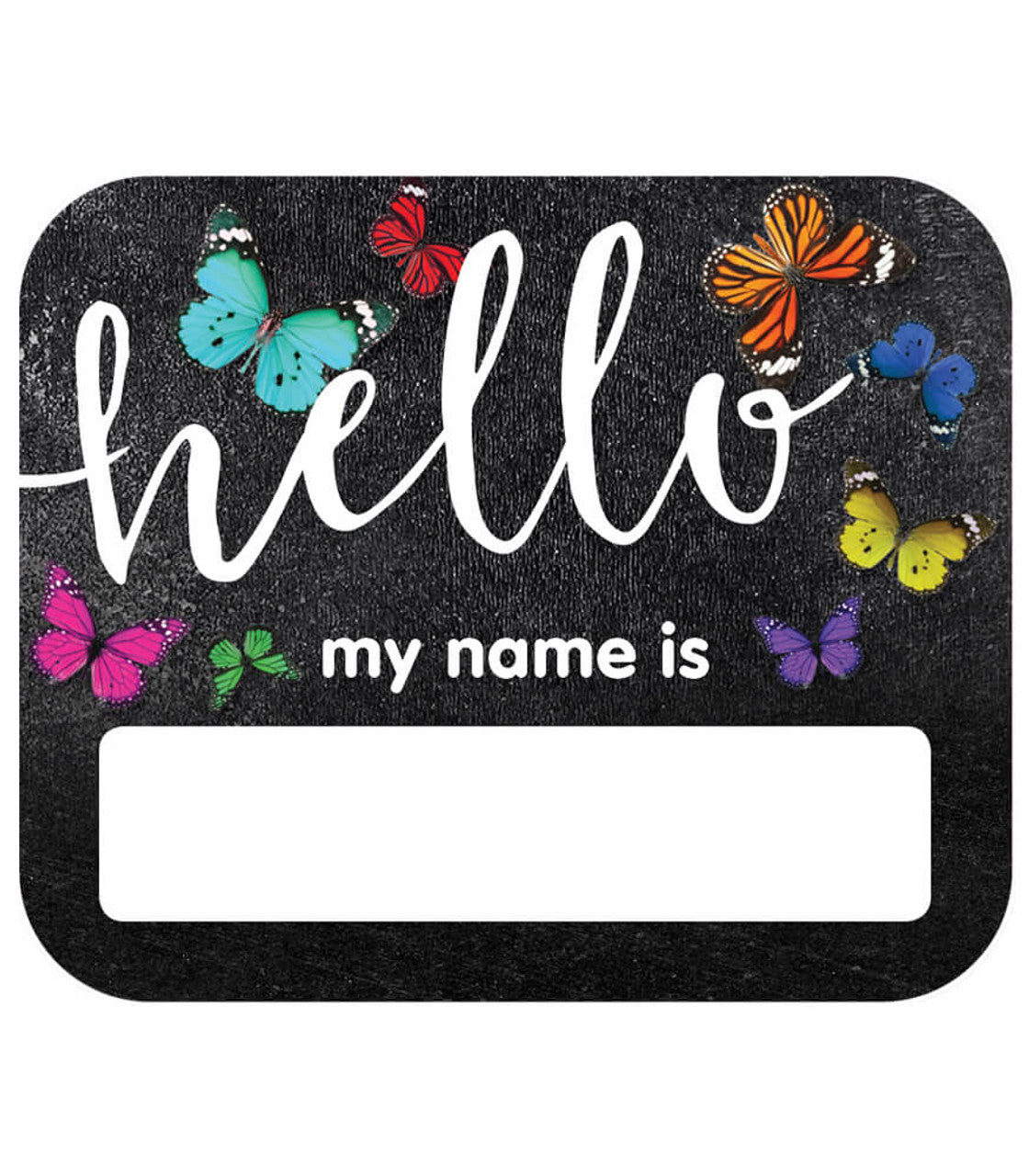 Perfect for the first week of school, open house, conferences, and more, Woodland Whimsy Hello Name Tags make classroom organization easy. Featuring a black background adorned by colorful butterflies, this pack includes 40 self-adhesive name tags—each measuring 3" x 2.5".